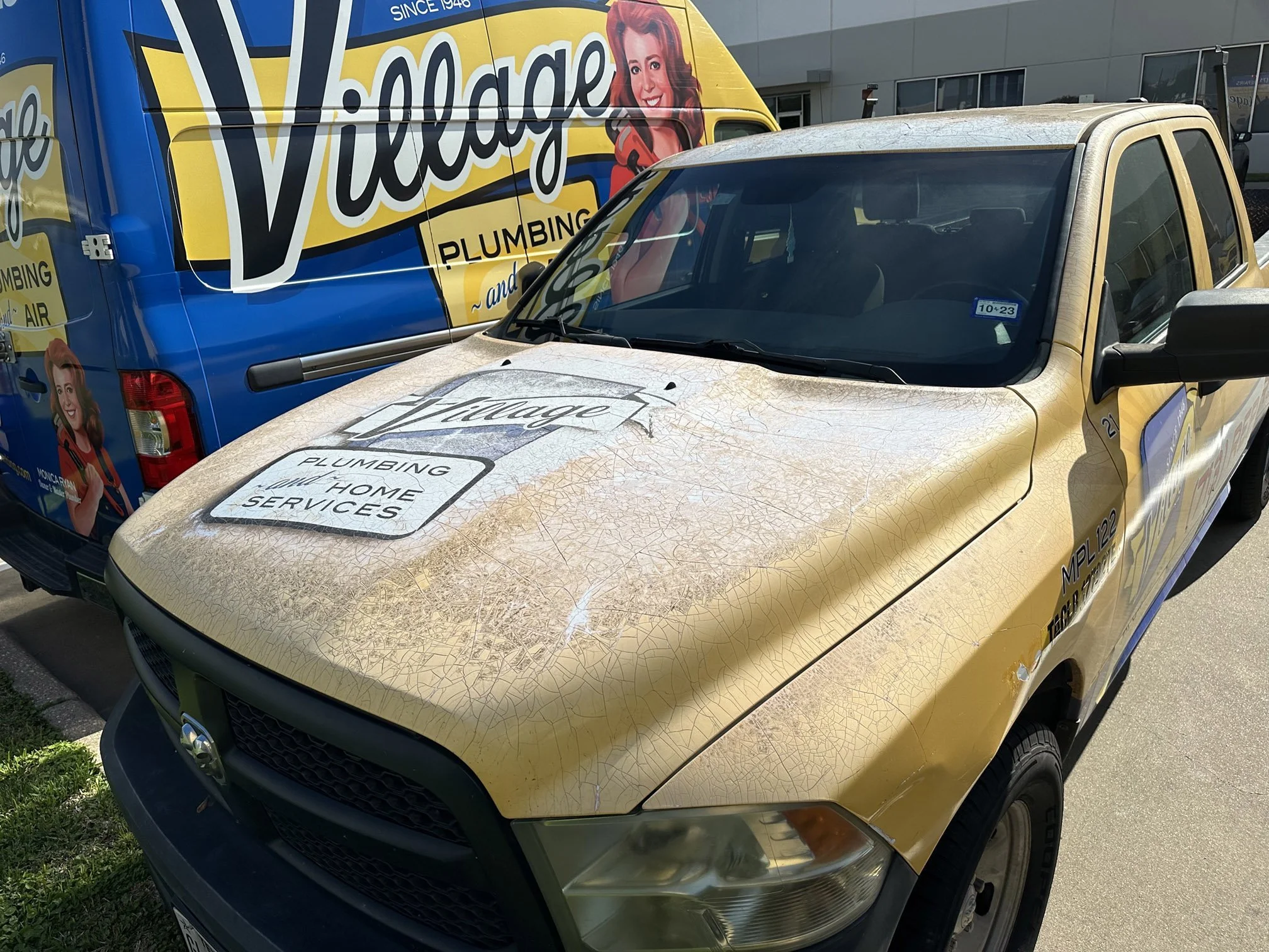 This vehicles wrap has been damaged due to continues UV Light hitting it in the same position causing the decals to fade over time